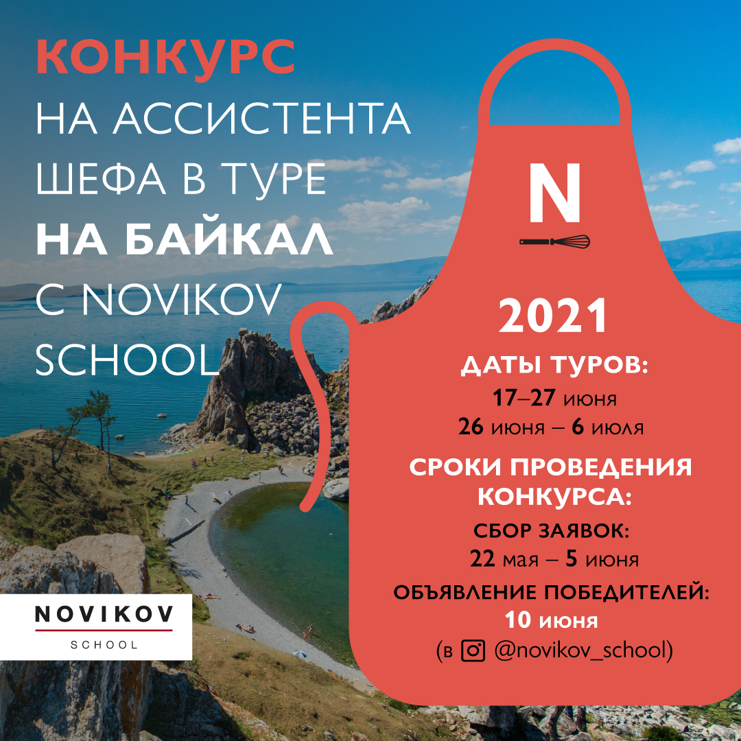 Кулинарная школа Novikov School объявляет конкурс на ассистентов шеф-поваров в гастрономическом туре на Байкале летом 2021